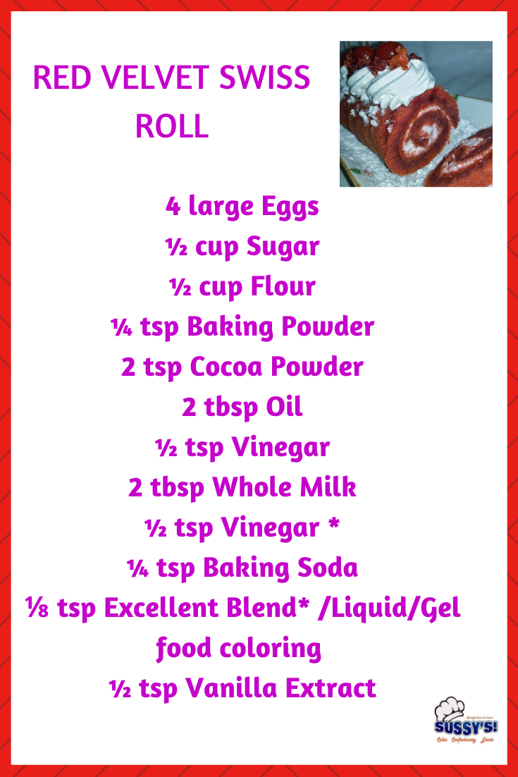 - Don’t over bake your Red Velvet Swiss roll or any swiss roll. If you do, it would be hard to roll. Baking should be between 10-15 minutes.