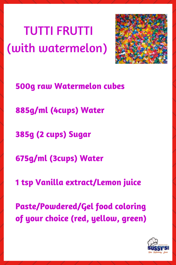 As promised in my Homemade Tutti Frutti recipe (with Papaya) here’s the watermelon version of my no-fail tutti frutti recipe! It’s very simple and it actually doesn’t take as much time like the papaya version.