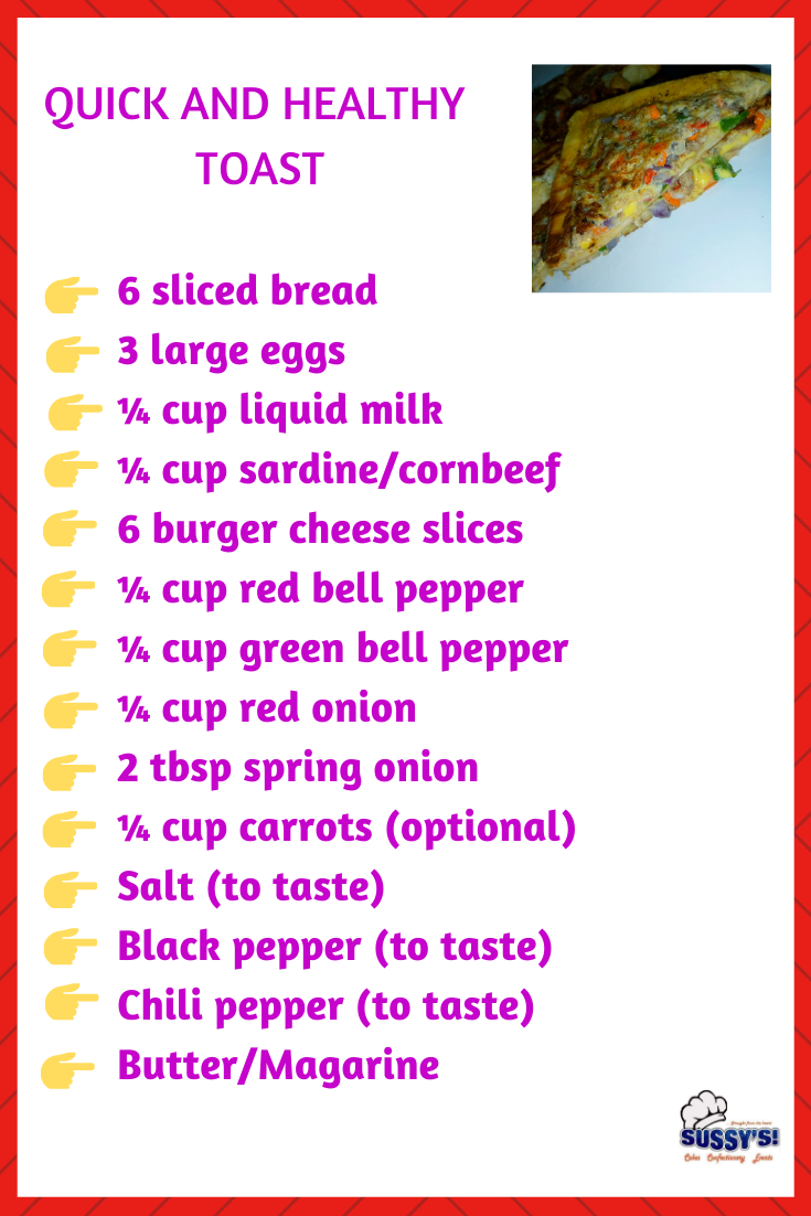 - Don’t use seasoning cubes as this is unnecessary and toast will end up getting salty. Leave out other seasoning and spices as you want the toast simple, delicious and most importantly healthy.