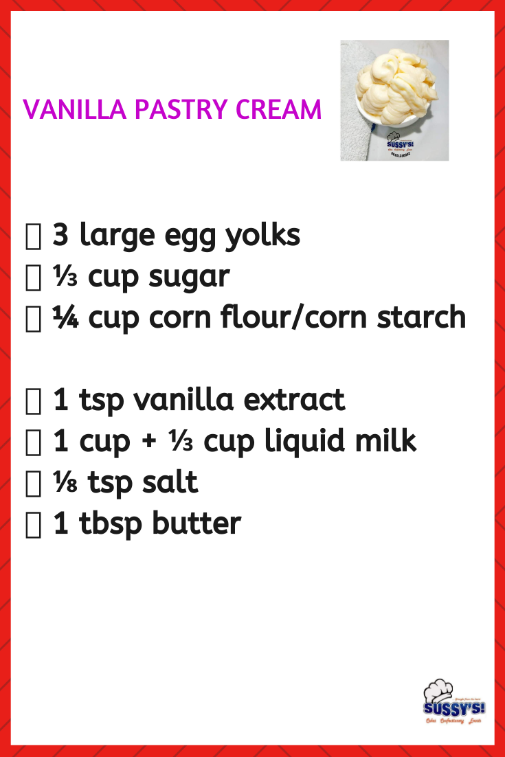 If you have seen the FILLED DOUGHNUT RECIPE I shared last week, you will discover one of the fillings for the doughnuts was this Vanilla Pastry Cream. Like I always say, ALL my recipes are very simple to make and you can always get the items at stalls/malls near you. You also do not need any special baking or dessert skills to make them!